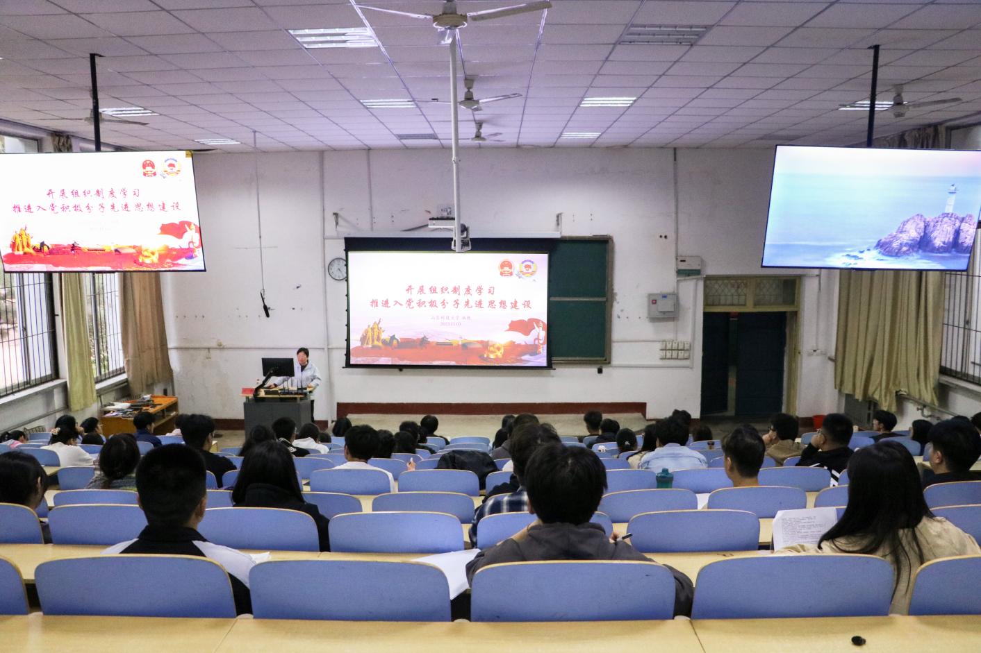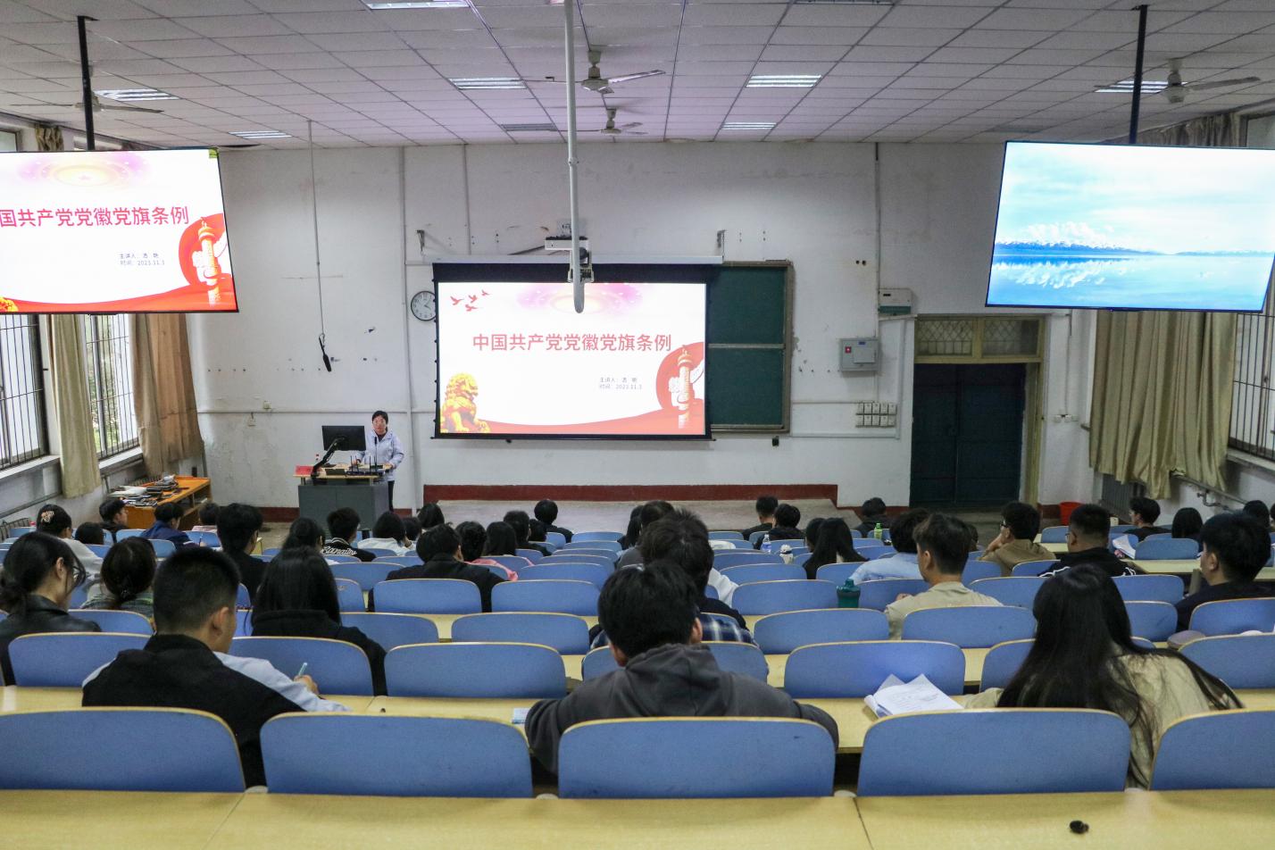 11月3日,必威西汉姆联学工办主任、团委书记、第四党支部书记洒艳在1A107为入党积极分子讲授“中国共产党党徽党旗条例”与“开展组织制度学习推进入党积极分子先进思想建设”专题党课。