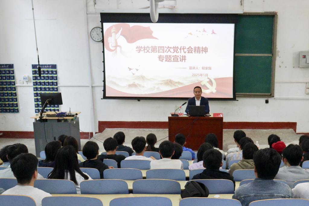 5月13日,公司党委副书记、副经理程家国在1A107,为公司员工党员、工程管理21-1班全体同学作公司第四次党代会精神宣讲报告。