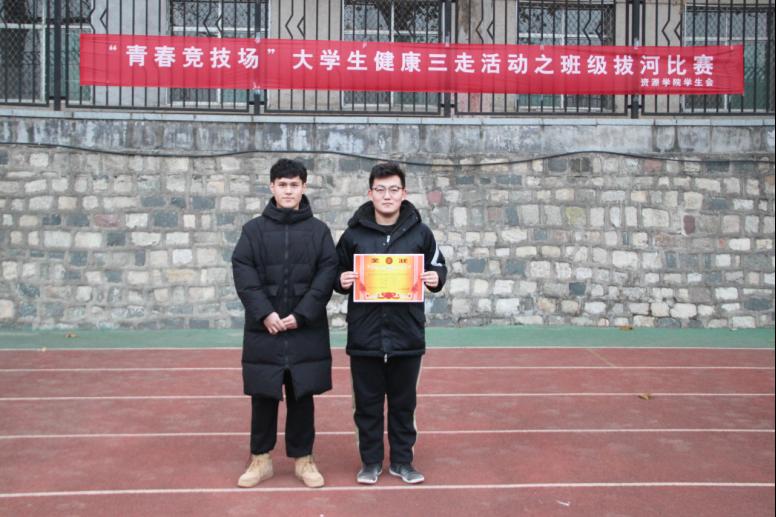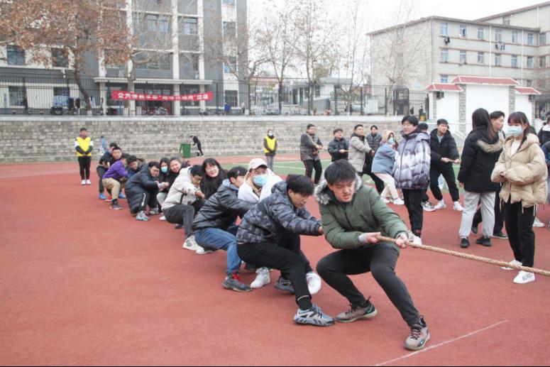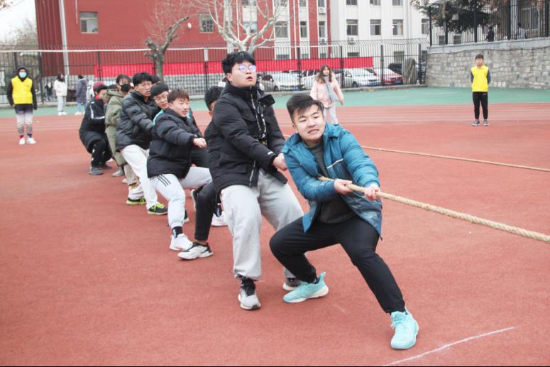 比赛在晋级决赛的4支队伍中进行,以两两对决方式,采用三局两胜赛制。赛前,为保证比赛的公平与公正,确保比赛顺利进行,工作人员仔细核实参赛队伍上场人数。哨声响起,各班队员同心协力、斗志昂扬,使出浑身力气把绳子向后拉。细绳两端凝聚着班级的力量,细绳的不断移动是两个班级之间无声的较量,“一二一二”的蓄力口号洪厚响亮,同学们的欢呼呐喊声一再点燃现场氛围。经过前半场比拼,冠军之战在测绘(高本)18-1和土木19-2之间展开。只见备赛时,测绘(高本)18-1在班长的带领下仔细商讨对策;比赛时,队员们齐喊口号、集中力量、松弛有度,一点点将对方拉到了自家阵营中,获得比赛冠军。最终,土木19-2获亚军,造价19-1获季军,工管20-1、工管20-7和测绘19-2获精神文明奖。