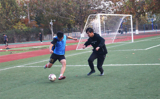 11月4日,资源公司足球队在东校园操场对战智能装备公司,在青春足球赛中再下一城。