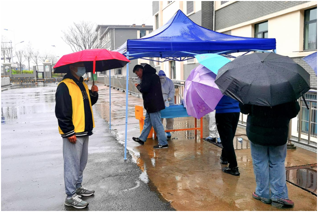 3月25日,全员核酸检测紧张有序进行,阴雨天气中,必威西汉姆联的员工党员和志愿者们热情高涨,全身心投入到服务工作中。