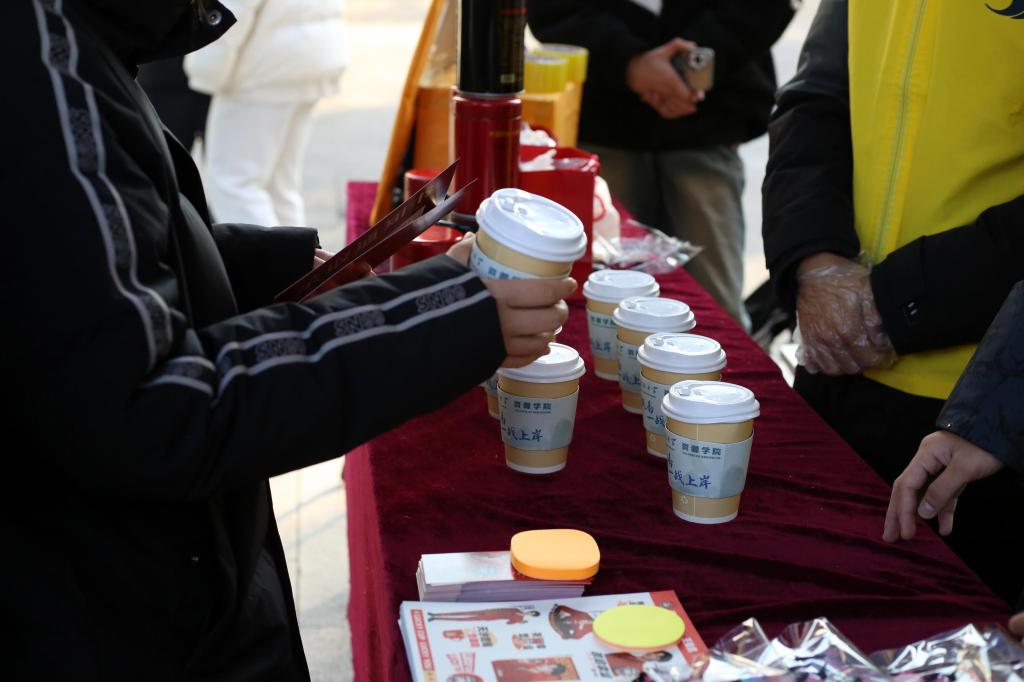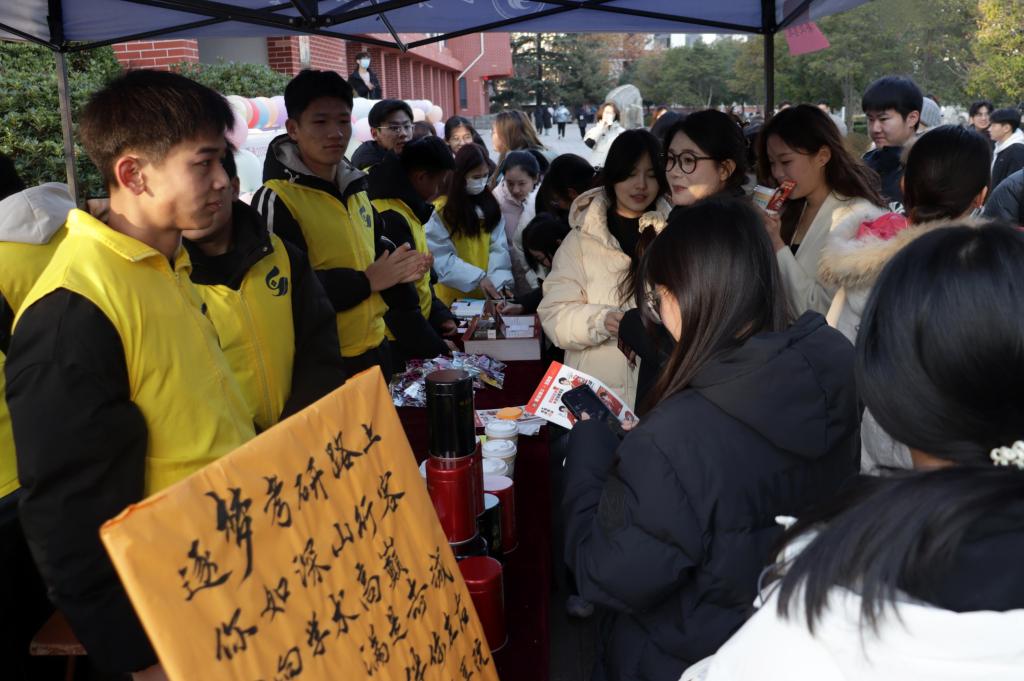 “研途漫漫,志坚如磐;茶韵悠悠,情暖人心。”“香茗氤氲,助力梦翔;愿君此行,谱写华章。”……展板上句句祝福语都饱含着对考研学长的诚挚问候与衷心祝愿。活动开始前,员工会工作人员提前将展板、茶具等规整摆放,设置打卡拍照点,营造出了浓厚的活动氛围。活动现场,暖人心脾的热茶、“幸运咖”提供的丰富礼品、饱含深情的祝福话语都一一送到考研学子的手中,让大家在初冬感受到了来自公司的关怀和温暖,坚定了考研必胜的决心和信心。