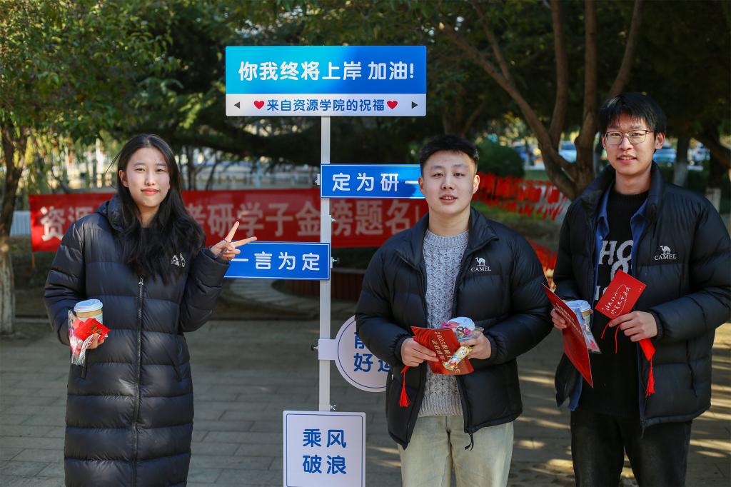 活动当天,精心布置的打卡路牌散布在校园内的各个角落,如同一盏盏明灯,照亮了考研学子的前行之路。“金榜题名,一战成硕”“一言为定,定为‘研’一”“学海研深,科大情真”……每一句鼓励的话语,每一块寓意深情的路牌,都是必威西汉姆联对即将跨入考场的考研学子最真切的祝福与期待。考研学子纷纷来到路牌前驻足留念,或展露笑颜,或目光坚毅,用相机定格下了这一段奋斗旅程中的美好片段。