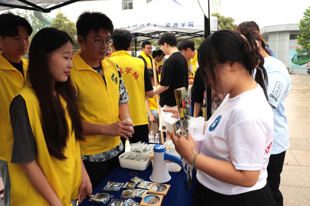 一枚枚精致的纪念徽章,一个个充满惊喜的钥匙扣盲袋,还有封藏着干花与校园诗意的DIY书签,一方方拓印,毕业生们亲手印制的趣味文字……都将校园记忆精心打包。这些独一无二的小小信物,如同满载着珍贵回响的时光胶囊,将化作前行的温暖力量,陪伴毕业生启程。愿此去一路繁花相伴,前程似锦,在更广阔的天地里绽放属于他们的璀璨光芒!