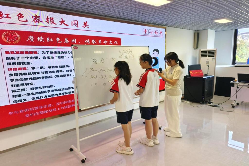 队员们担任“红色讲师”,借助历史影像资料,为孩子们生动还原了济南战役的真实场景与英雄故事。他们将历史转化为有温度的革命片段,引导孩子们在历史与现实的对比中,深刻领悟幸福生活的来之不易,激励青少年传承爱国心,立报国志,践强国行。活动还特别设计了“红色密报大闯关”互动游戏,让孩子们化身“小情报员”,在紧张有趣的解密任务中学习党史知识。这一沉浸式体验不仅增强了党史学习的趣味性和代入感,更激发了青少年主动了解红色历史、传承革命精神的浓厚兴趣。