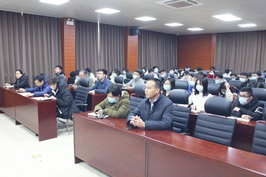 高尚宇在会上指出,十九届五中全会是在我国将进入新发展阶段、实现中华民族伟大复兴正处在关键时期召开的一次具有全局性和历史意义的重要会议,如何学习好、贯彻好、领会好全会精神内涵是公司师生正面临的首要课题。随后,高尚宇围绕“全球新格局”“发展新目标”“执政新理念”“建设新成就”四个方面,带领公司师生深刻解读党的十九届五中全会精神,系统梳理新时代、新时期下的远景目标。他强调,放眼国际,世界百年未有之大变局进入加速演变时期,经济、科技、文化、安全、政治等格局深刻调整,面对错综复杂的国际形势、艰巨繁重的改革发展任务与新冠疫情的严重冲击,以习近平同志为核心的党中央不忘初心、牢记使命,团结带领全党全国各族人民砥砺前行、开拓创新、奋发有为,推进党和国家各项事业,战胜各种风险挑战,使得中国特色社会主义的航船继续乘风破浪、坚毅前行。实践再次证明,只有紧密团结在党中央的旗帜之下,才能建功宏伟时代、实现家国梦想。公司师生要准确把握党的领导核心作用,坚持不懈用习近平新时代中国特色社会主义思想武装头脑、指导实践、推动工作。