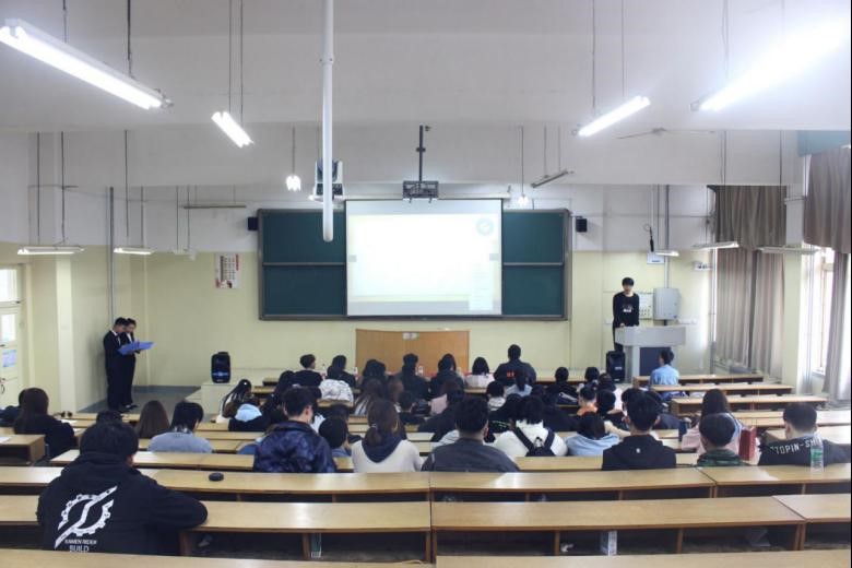 活动中,各社团代表依次登台演讲,利用幻灯片、视频短片等形式,简要介绍社团工作,重点突出社团特色,并通过照片、表格等形式直观展示了前期工作成果。台上八大社团各展风采,台下评委观众掌声不断。据悉,本次活动将评选出“明星社团”和“优秀社团”称号。