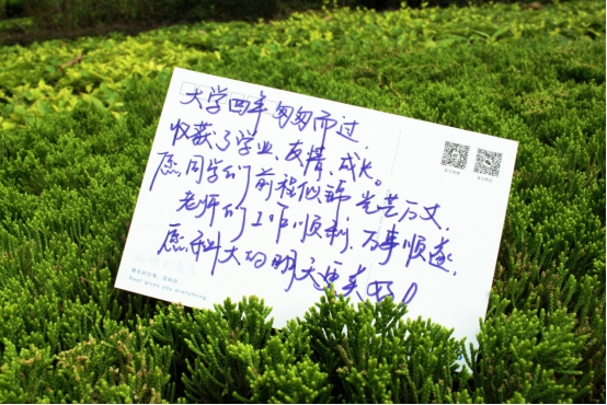 “愿你归来,仍是少年”“你要日益努力,而后风生水起”“回首,是一段青春无悔的岁月,前望,有一个繁华似锦的前程”……时光慢递、以书传情,毕业生们款款写下寄语,献给两年后的自己。