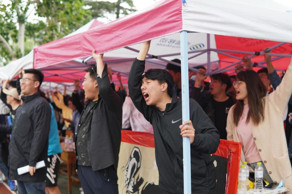 赛场之下,服务人员各司其职、暖心相伴,他们无偿提供医疗服务,仔细清理坐区垃圾,主动搀扶受伤选手,热情引导健儿检录,用周到的后勤保障消散运动员们的满身疲倦。观众虽仅有百名,但大家有一致的集体荣誉感。他们在场下为公司员工呐喊助威,不惧突来风雨,为资源学子加油鼓气,展现了公司学子众志成城、团结向上的精神面貌。