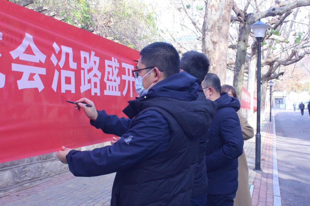 一朝凛冬至,考研正当时。活动前,公司有序组织人员开展悬挂工作,确保平整、美观,位置适宜。活动中,公司领导与辅导员以笔笺情,在横幅上为考研学子写下殷殷鼓励;同学们提笔书写祝愿,为日夜备考的学长学姐们送上真挚祝福;考研学子纷纷驻足观点、拍照留念,喜悦之情溢于言表,深受振奋与鼓舞。
