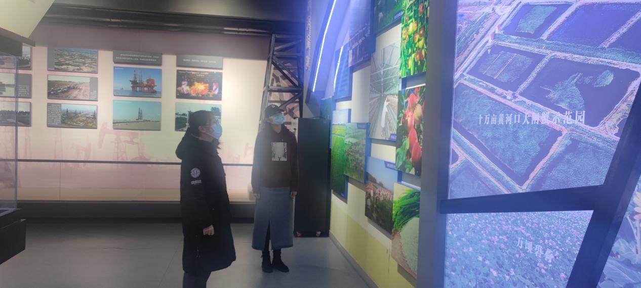 活动当日,团队成员来到山东省东营市垦利区文化大厦之黄河博物馆,在工作人员的带领下,团队成员先后参观了黄河入海流、神奇黄河口、拓荒垦利人三个专题展厅和两个临时展厅。通过参观,团队成员进一步体会到了黄河口文化核心内涵,认识到了东营市在地理位置上的唯一性,黄河口文化在黄河文化中的唯一性,以及东营市利用地理优势和资源优势来讲好“黄河故事”的历史使命。