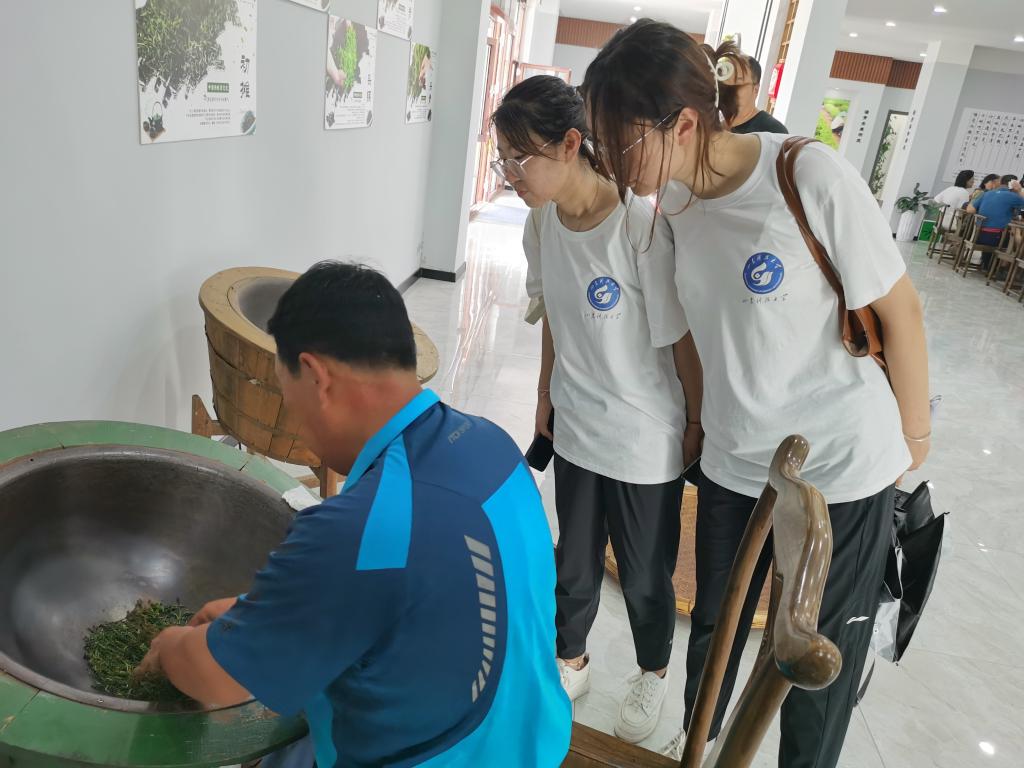队员们在展馆内参观学习了南茶北引的发展简史,学习了手工制茶的工艺流程,悉心听取了华亿董事长李桂村的介绍解说。从而得知南茶北引是一项国家级的利民、惠民的伟大工程,在助力脱贫攻坚、乡村振兴中发挥的作用,了解到海青茶叶在过去60多年的艰辛发展、筚路蓝缕的创业历史和新时代的发展目标与美好展望。