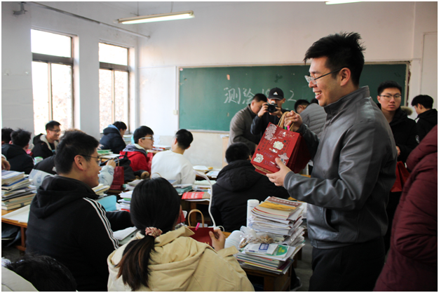 “公司给大家送上福袋,希望这些小小的礼物能给大家缓解压力,鼓劲加油。请大家相信,你们绝不是孤军奋战!”公司党委副书记程家国亲手将一个个福袋递到考研学子手中,向考研学子表示慰问、鼓励和期望。