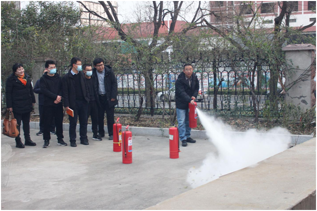 培训过程中,尹华勇结合真实火灾案例,向大家普及了消防安全基础知识,并列举了校园生活和工作环境中存在的火灾隐患。他要求公司全体教职工要时刻绷紧安全之弦,深刻认识到做好高校防火工作的重要性。随后,尹华勇现场演示了灭火器的使用方法,介绍了“一晃、二瞄、三拔、四压”的使用口诀。最后,全体教职工在户外进行了模拟灭火操作演练,进一步熟悉、掌握了灭火器材的使用方法与注意事项,提高了火灾自救、自护能力,达到了演练的预期效果。