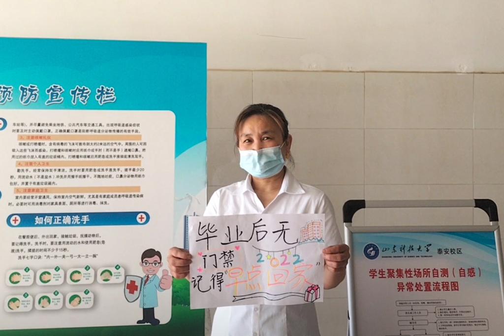 “毕业后无门禁,记得早点回家”“岱宗大街223号的地址记得换啦”“在外要注意安全,戴好口罩”,宿管阿姨、快递小哥和门卫大爷等用最朴实的话语送上最真挚的祝福,是对毕业学子的祝愿,更是对“家人”的叮咛。