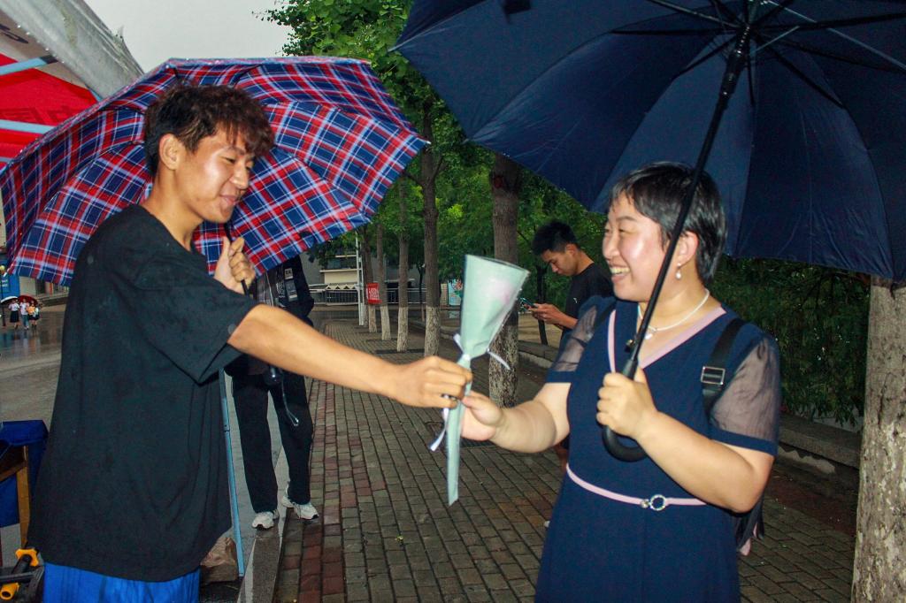 “老师,送您一束花,感谢您的悉心培养!”毕业生也为领导、老师送上鲜花,将真挚心意寄予花香,将谆谆教诲铭记心田。
