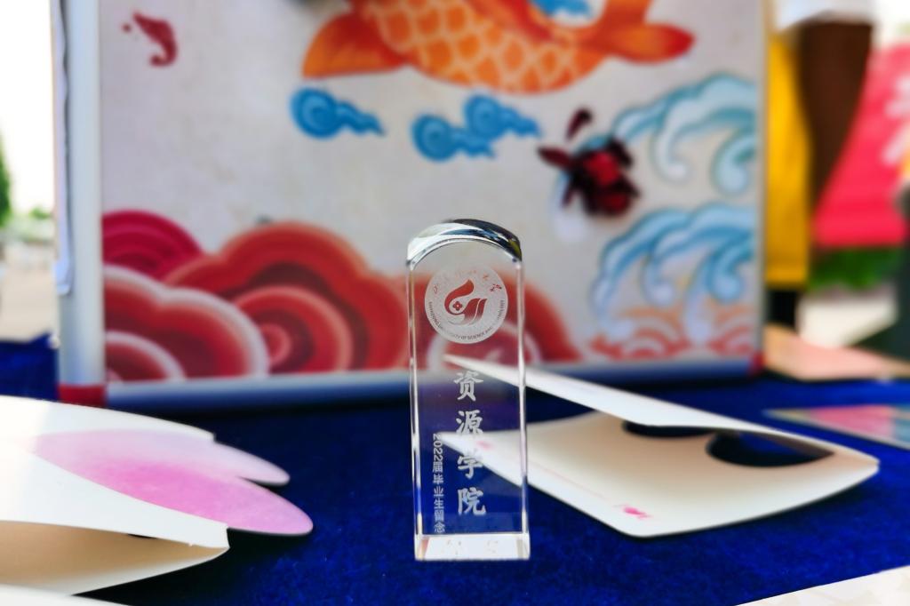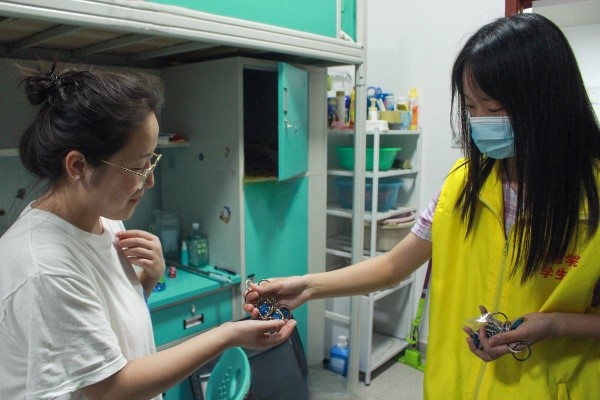 “学姐,毕业快乐,这是您的毕业纪念品”员工会成员走进毕业生宿舍,送上精美的钥匙扣和温暖的祝福。