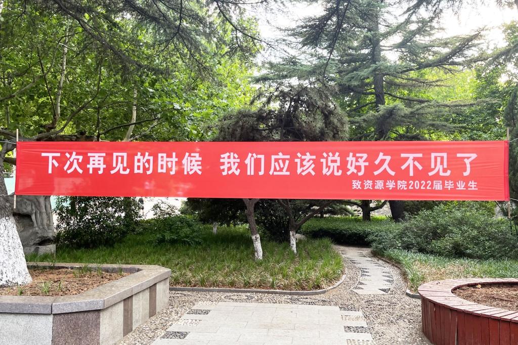 “愿此去繁花似锦,再相逢依旧如故”“下次再见的时候,我们应该说好久不见了”,校园里挂起的横幅,成为毕业季一道暖心的风景,浓缩镶刻着无限祝福。