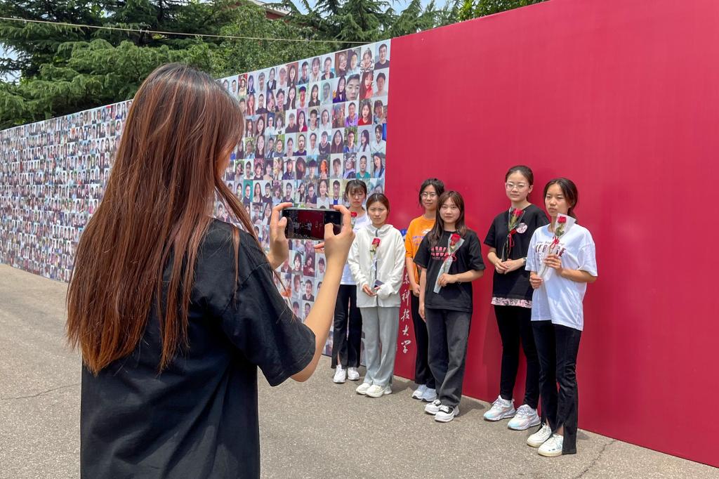 一张张毕业生风采照片组成背景墙,成为了毕业生们合影的绝佳位置,定格下毕业生离校前美好的回忆。