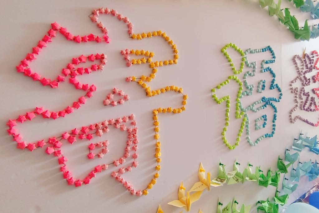 手折纸鹤心意满满、星星成字寄语送别,彩纸翻折间承载着学弟学妹们的殷殷心意。