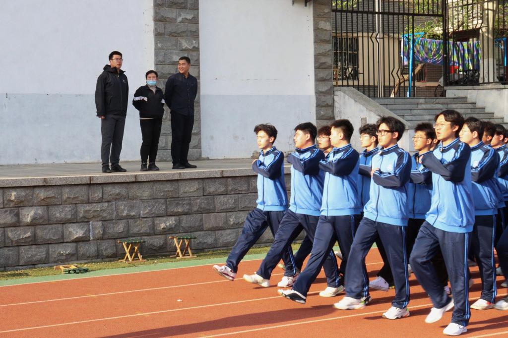 4月10日,公司学工办主任、团委书记洒艳、辅导员王淦、刘帅杰到操场指导运动会开幕式方队训练。