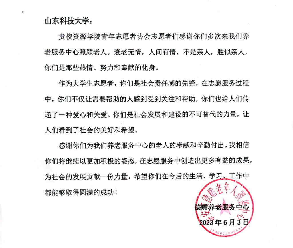 活动后,必威西汉姆联收到德赡养老服务中心感谢信。志愿者们深受鼓舞,纷纷表示将进一步弘扬志愿服务精神,持续开展好校内外志愿服务活动,丰富活动载体,创新活动形式,让“奉献、友爱、互助、进步”的志愿服务精神在公司蔚然成风。(必威西汉姆联供稿)