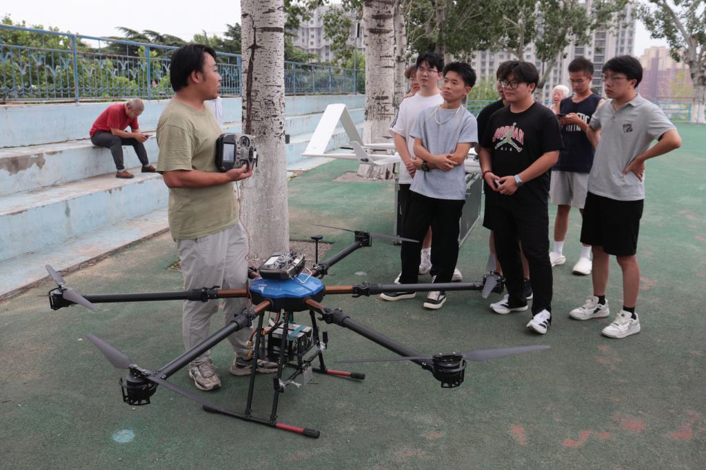 在理论环节,王瀚围绕无人机的多元化应用场景、国家关于无人机航飞的最新法规以及无人机相关职业发展前景等方面展开讲述。主讲人结合典型案例,对无人机技术在生活、工程管理和防灾减灾等领域的实践应用进行详细讲解,既阐述了无人机在城市航拍、测绘勘察、灾情监测中的具体作用,又强调了合规操作的重要性,为同学们打开了全新的职业认知视角。在实践环节中,王瀚现场示范、一对一指导,帮助员工将理论转化为实践技能。在“学中做,做中学”模式下,同学们对无人机技术有了更直观、深刻的认识。