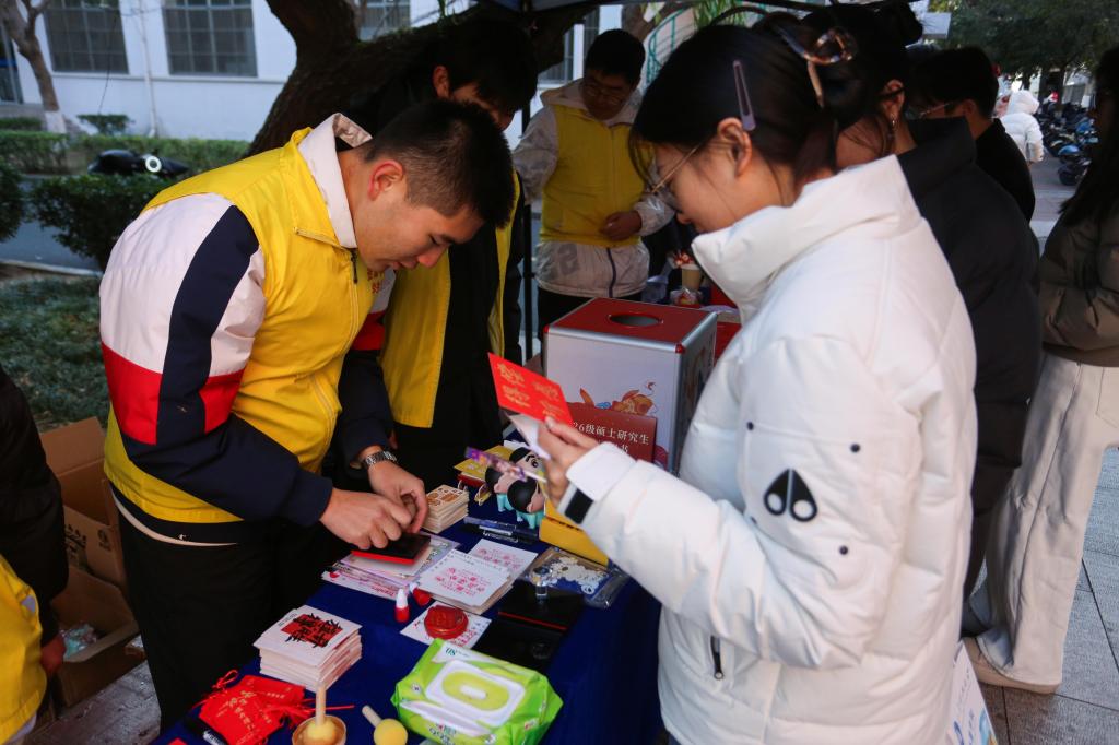 活动以“红绳盲盒”与幸运小兽立牌为载体,将祝福转化为可触摸的温暖。同学们在许愿牌上写下“此程必上岸”等心愿与祝福,抽取装有定制文创、文具或零食的盲盒礼包;现场提供的限定明信片及棒棒糖,也让备考的疲惫在甜意中悄然消散。不少考研学子驻足拍照,将这份来自公司的牵挂与鼓励,定格为奋斗时光里的温暖印记。