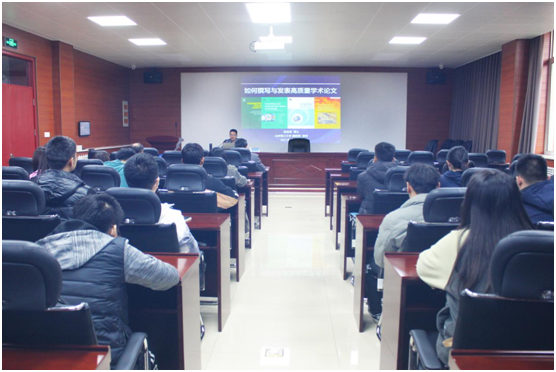 赵金宝首先以“撰写与发表高质量学术论文”为主题,向同学们系统阐述了“什么是学术论文”“学术论文的撰写”“学术论文投稿与发表”等一系列知识。他指出,学术论文是在科学研究领域内探讨科学本质特征及其发展规律等内容的理论性文章,具有学术性、创新性、科学性、形式规范性等特征。他强调,同学们应立足自身研究实际,坚持严肃的科学态度与创新意识,充分了解相关课题的研究现状与形势,避免无根据、过度重复研究。