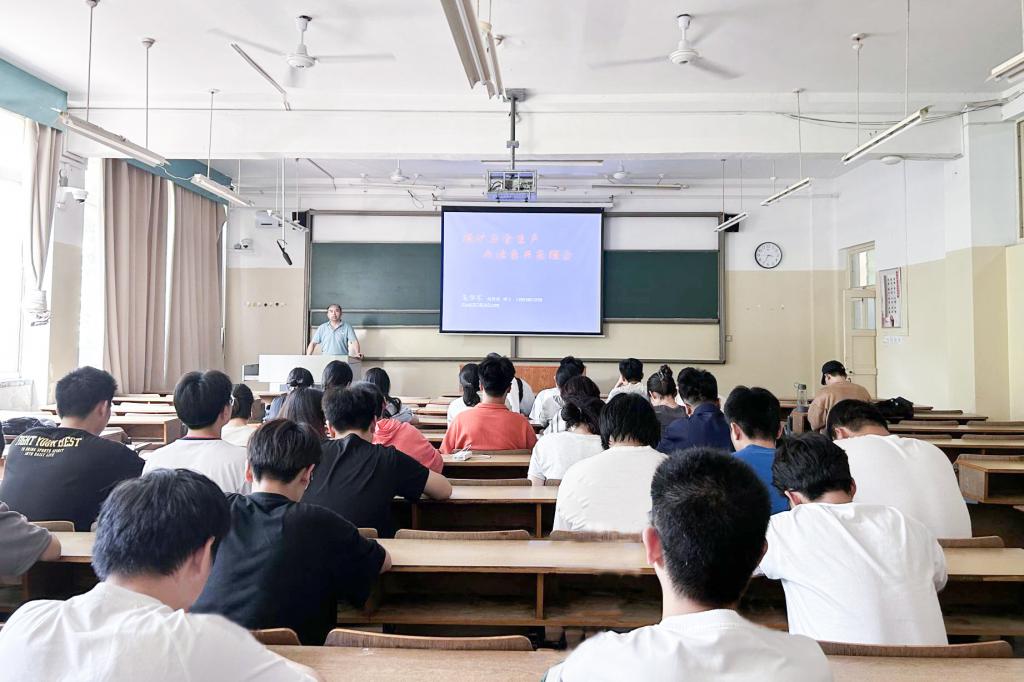 朱学军图文并茂、深入浅出地向同学们介绍了煤矿生产事故的类型及产生原因,用翔实的煤矿事故降低数据和矿山环境改善事实印证了我国40年来煤矿安全环境翻天覆地的变化和煤矿绿色安全开采技术的进步,向同学们深入讲解了绿色开采技术解决传统开采方式无法解决的煤矿安全与环境问题的优势及方法。
